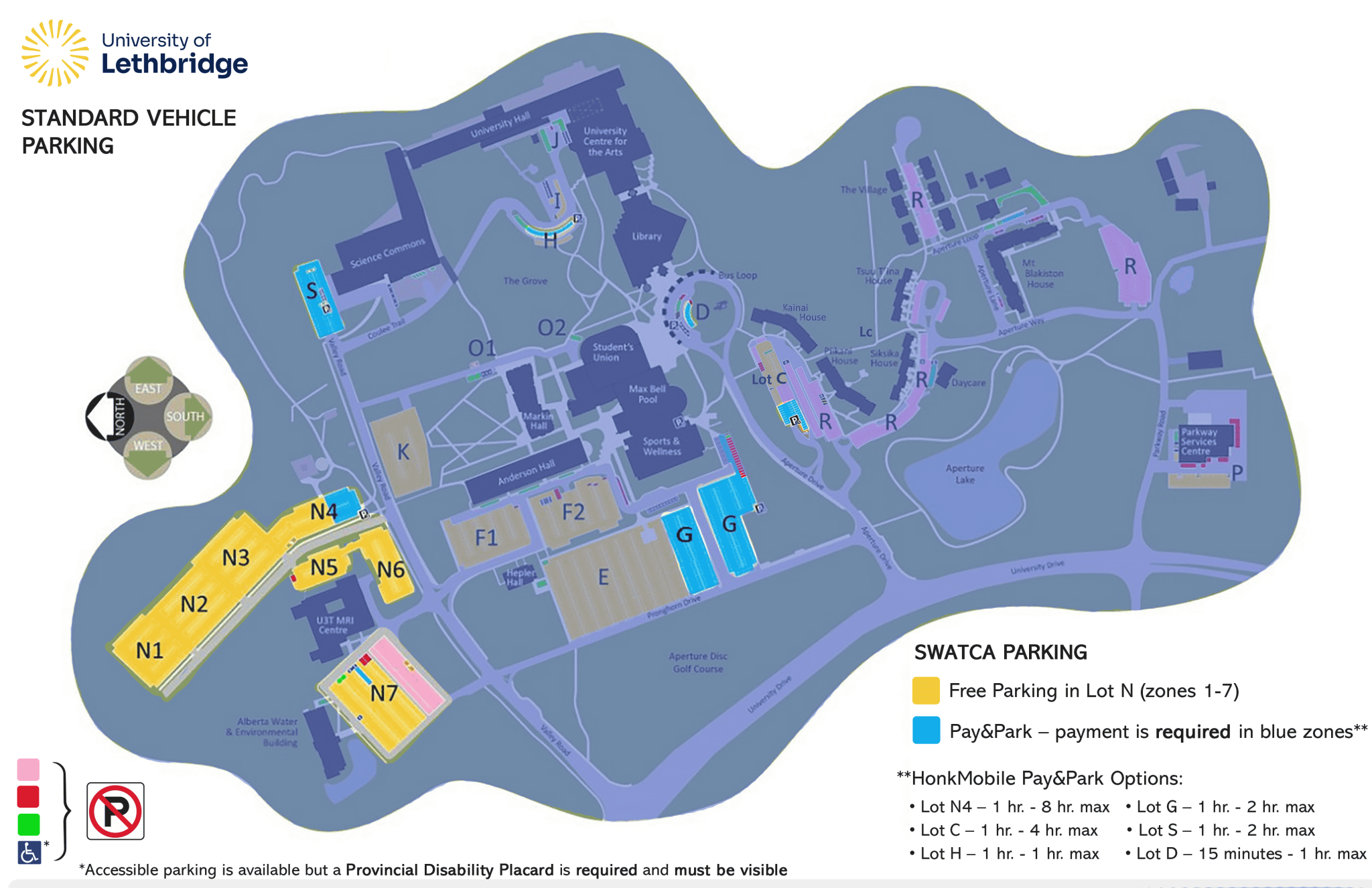 General Parking in Lots: Lot N 1 through 7 (N4 is Pay & Park). You can pay to park in Lot S (Science Commons) or Lot G (Sports & Wellness).
